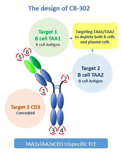 CB-302: An innovative TAA1xTAA2xCD3 trispecific TCE leads to rapid and deep B-cell depletion with well-tolerated safety